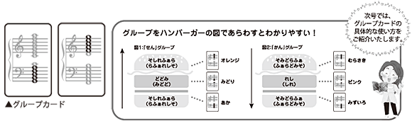 先月号では、「グループカード」の役割について説明しました。今回は、「グループカード」を活用しながら音符を覚える方法をご紹介します。